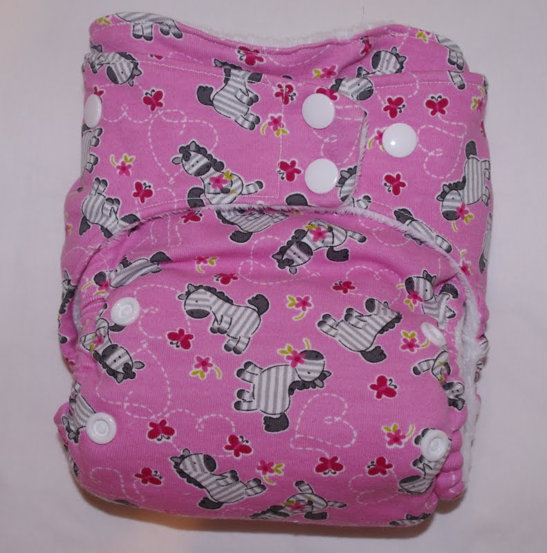 Last I made a cute cloth diaper for a friend having a baby soon. This was an experiment with the materials I was using and ended up being the 3rd try before I had a diaper I thought was fully functional and looked decent. I used a knit outer layer and a white minky inner. The absorbing layer was 2 layers of ZORB (an awesome product used in some cloth diapers). Since I was making this a one sized diaper (fits from 8 to 30+ lbs) I had to figure out how to sew in the ZORB just right so when the diaper was snapped down to a smaller size it wouldn't create bulk in the front. The snap system isn't perfect on this diaper and I also had to take apart the diaper after I had almost all the top stitching done to redo the leg elastic that wasn't tight enough on one side. Whew! But I did it ;-) I'm thinking about making a couple of holiday diapers for Cole this fall with the same type of materials. This makes a great nap time or night time diaper because the 2 layers of ZORB is equal to 16 layers of flannel in absorbency. This isn't a waterproof diaper so it still requires a cover. At some point I will be experimenting with adding a hidden PUL layer on diapers which would make it waterproof.